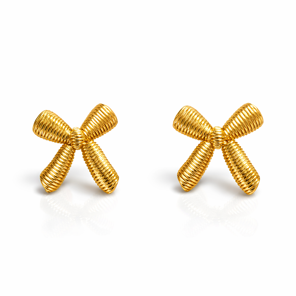 Gold Ribbed Bow Studs
